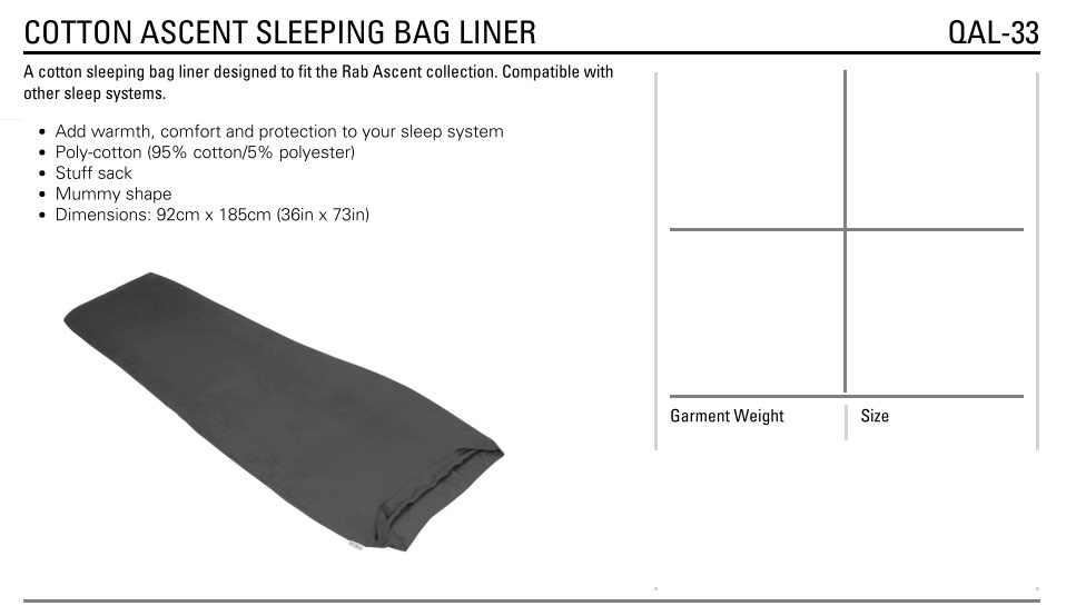 Rab. Sleeping Bag Liner - Cotton Ascent Sleeping Bag Liner #QAL-33
