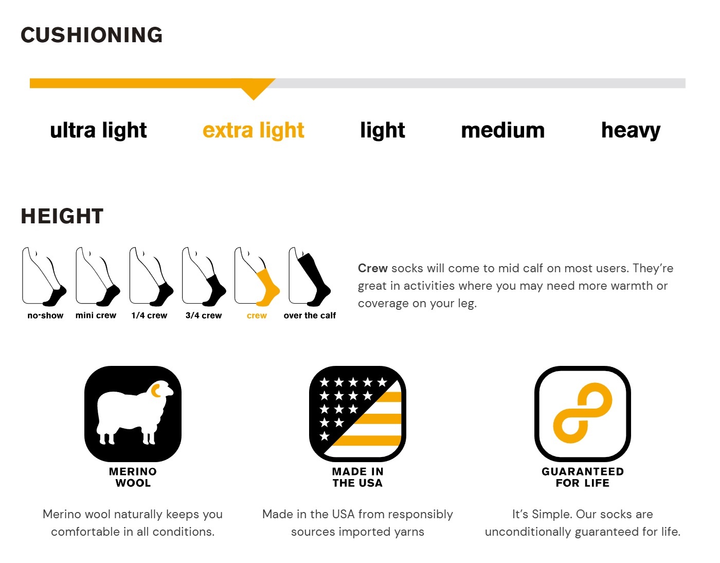 Elevate your sock experience with the Doubletrack Extra Light Crew – a merino marvel that stands up to the rigors of your journey while embracing you in unparalleled softness. From sunrise hikes to urban strolls, let your feet that offer a feather-light sensation that caress your feet, providing breathability and moisture-wicking properties for ultimate comfort. The crew length ensures a snug yet unrestrictive fit, making them ideal for traversing both rugged trails and city streets with equal finesse.