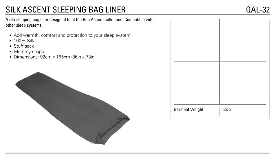 Rab. Sleeping Bag Liner - Silk Ascent Sleeping Bag Liner #QAL-32