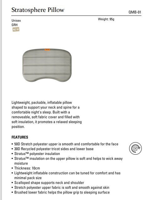• Stratus™ insulation on the upper pillow is soft and helps to wick away moisture